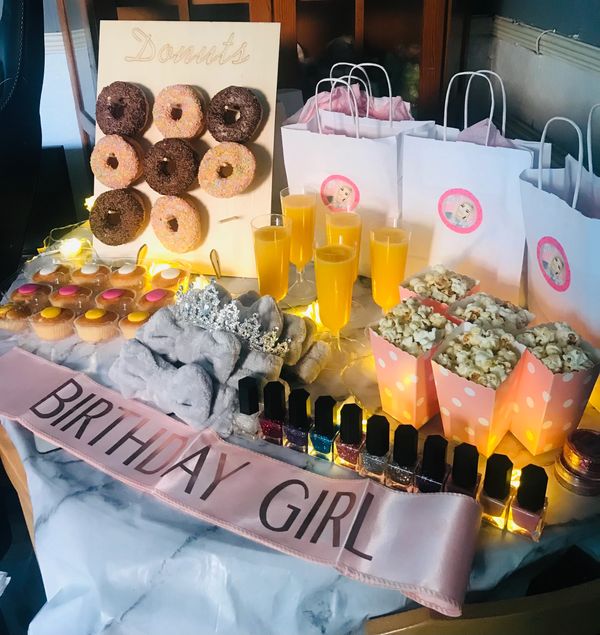 Add in a dounut wall, cakes, gift bags, and a beautiful tiara and birthday sash to complete the event.